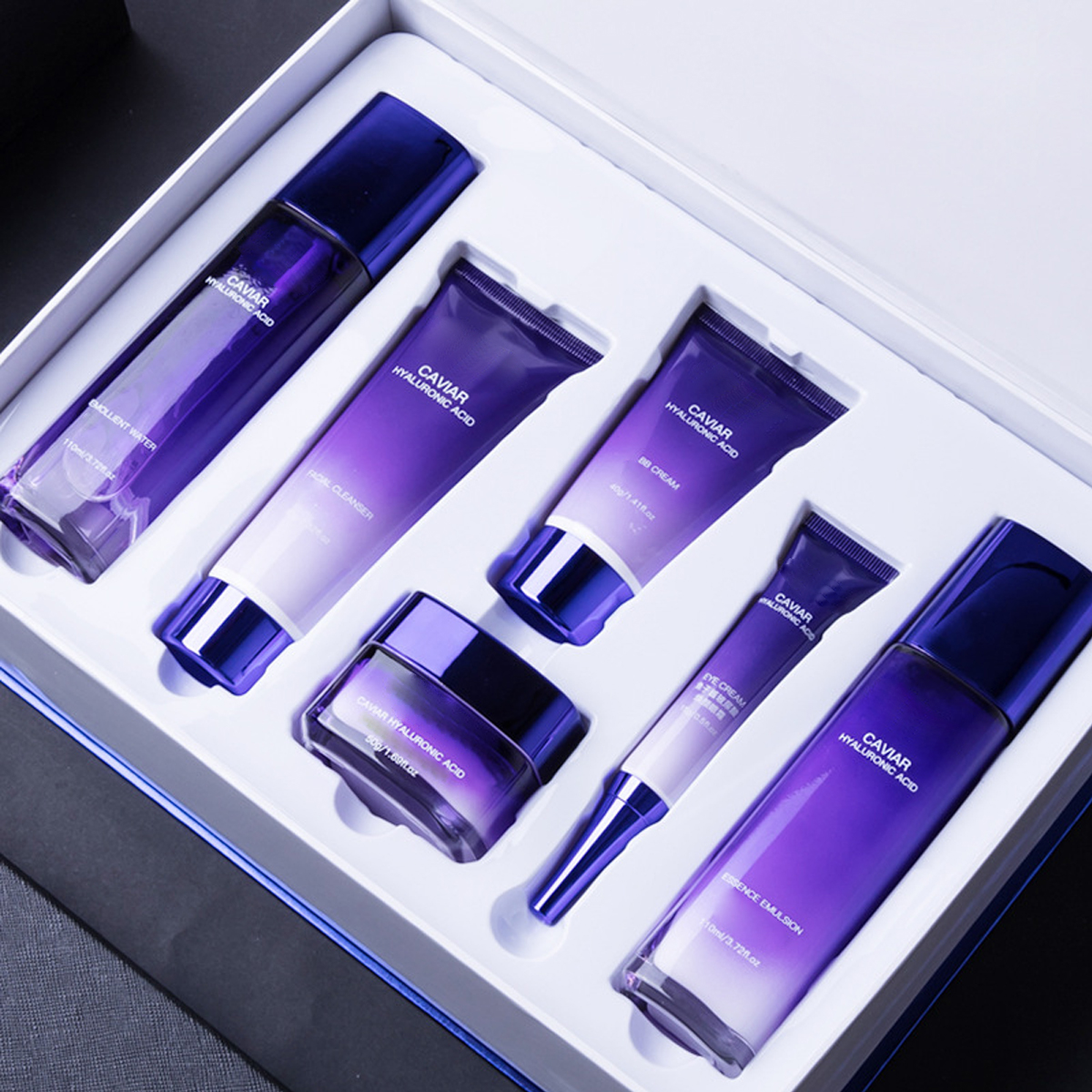 Startseite Geschenk-Set Kaviar Hyaluronsäure sechsteiliges hydratisierendes feuchtigkeitsspendendes Kosmetikset Hautpflegeprodukte