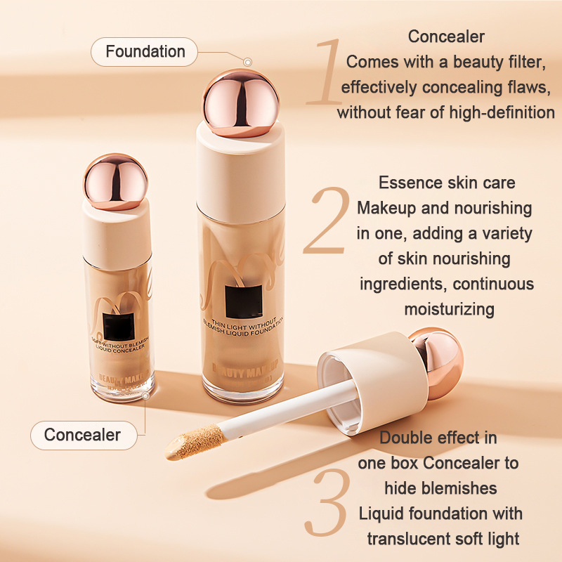 Startseite Schminke Stiftung Leichte und makellose flüssige Foundation Concealer Kombination Set boxed Concealer unsichtbare Pore flüssige Foundation