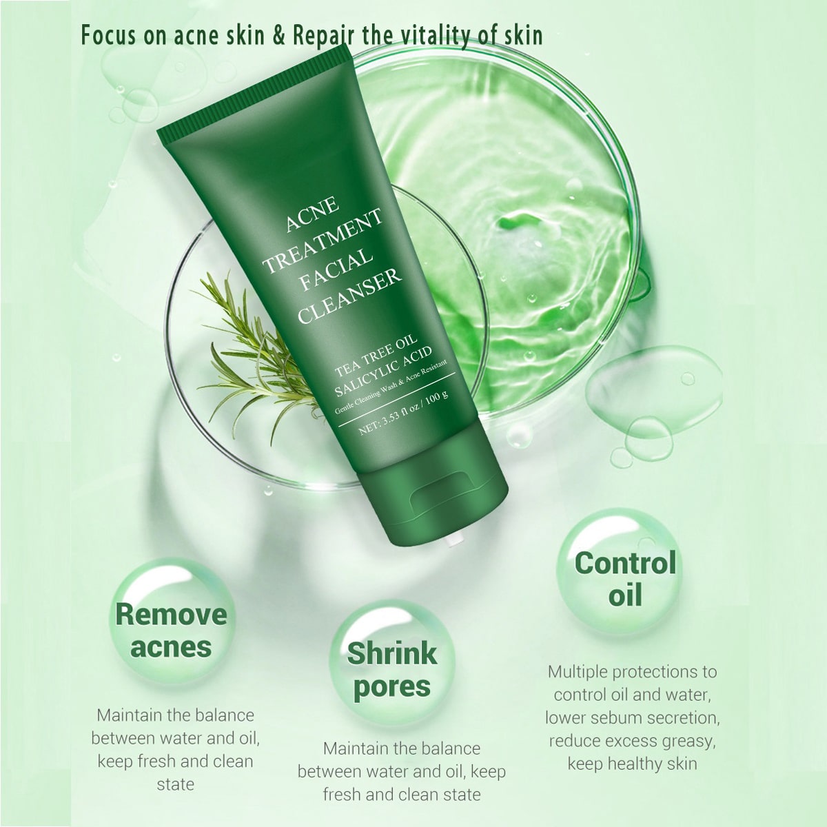 Startseite Gesichtspflege Reinigungsmittel Teebaumöl Aknereinigung Gesichtsreinigung Tiefenreinigung Feuchtigkeitsspendende Gesichtsreinigung 100g