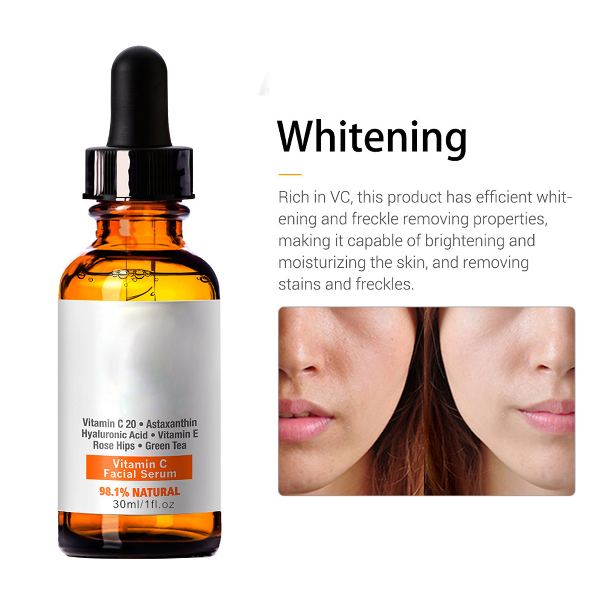 Product Description product name Whitening and anti-freckle essence, whitening skin, shrinking pores, moisturizing and moisturizing freckles and brown spots Main